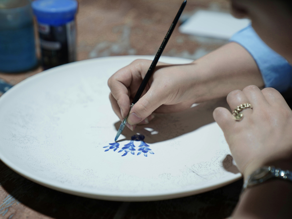 À l’atelier Peinture sur porcelaine, les adhérents décorent et personnalisent des éléments de vaisselle ou des objets décoratifs, en s’appuyant sur des modèles ou en laissant libre cours à leur créativité et à leur imagination.