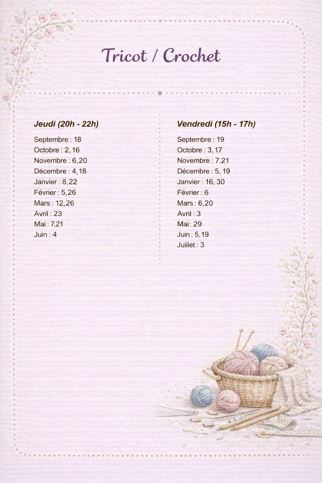 Venez découvrir ou vous initier au tricot et au crochet, et profitez des bienfaits du fait-main dans une ambiance conviviale, propice au partage et aux échanges.
